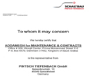 2019, ADDAMEGH For MAINTENANCE & CONTRACTS has been awarded (3) years Depots Maintenance contract with SNC LAVALIN for Maintenance, Troubleshooting and Repair all the machines and equipment’s in SAR - Al NARIYAH and RIYADH.